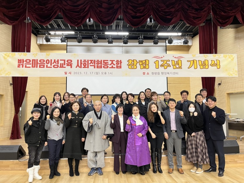 밝은마음인성교육 사회적협동조합 창립 1주년 기념식 페이지 정보 작성자김선호 댓글 0건 조회 122회 작성일 23-12-18 17:04 본문 참석 내빈 및 조합 이사~~~ SNS 공유 목록 이전글밝은마음인성교육 사회적협동조합 창립 1주년 기념식 23.12.18 다음글`맹자, 세상을 말하다' 송철호 작가 초청 특강 23.12.11 댓글목록 댓글목록 등록된 댓글이 없습니다.